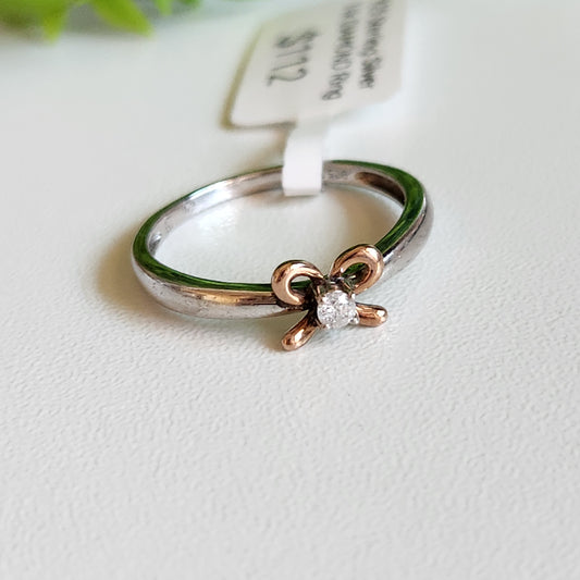 925 Sterling Silver & 14k Gold Bow-Tie Diamond Ring