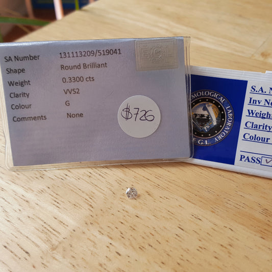 Natural 0.33ct G VVS2 Round Brilliant Diamond