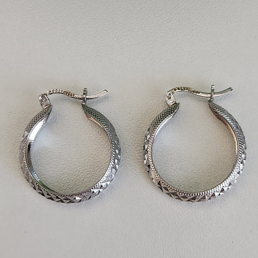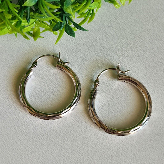 925 Sterling Silver Vintage Diamond Cut Hoop Earrings