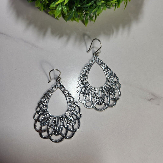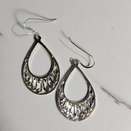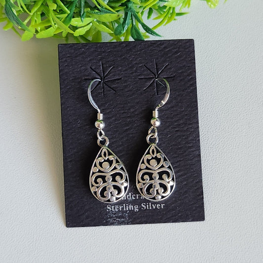 925 Sterling Silver Teardrop Ornate Earrings