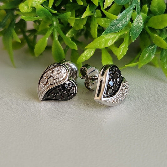 925 Sterling Silver White and Black CZ Cluster Heart Stud Earrings
