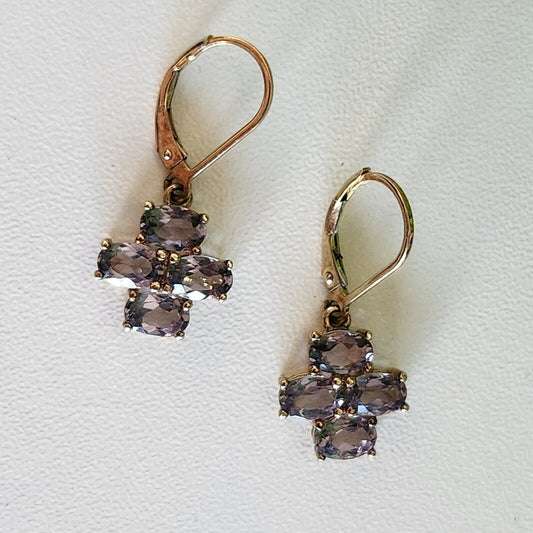 925 Sterling Silver Gold Vermeil Purple CZ Cross Dangle Earrings