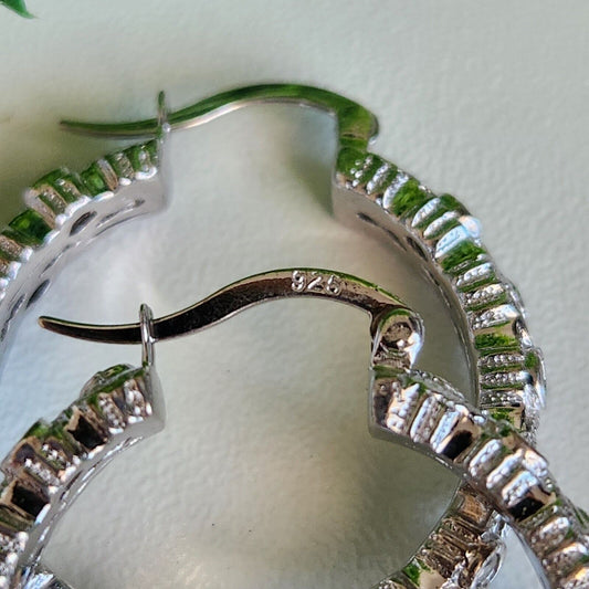 925 Sterling Silver CZ Diamond Hoop Earrings