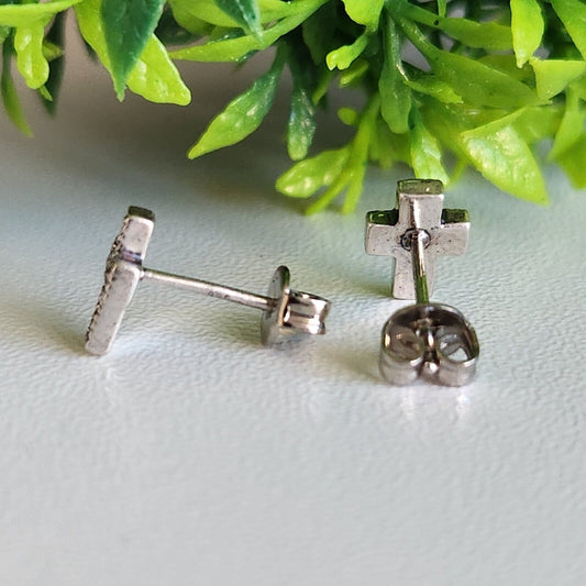 925 Sterling Silver Marcasite Cross Stud Earrings