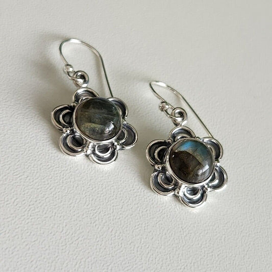 925 Sterling Silver Flower Labradorite Earrings