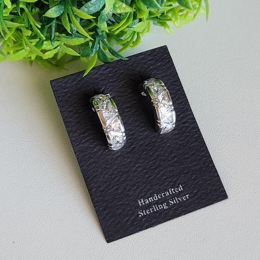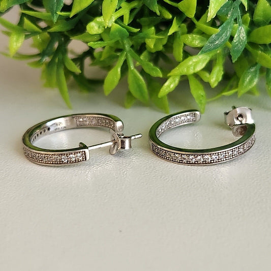925 Sterling Silver CZ Semi Hoops Earrings