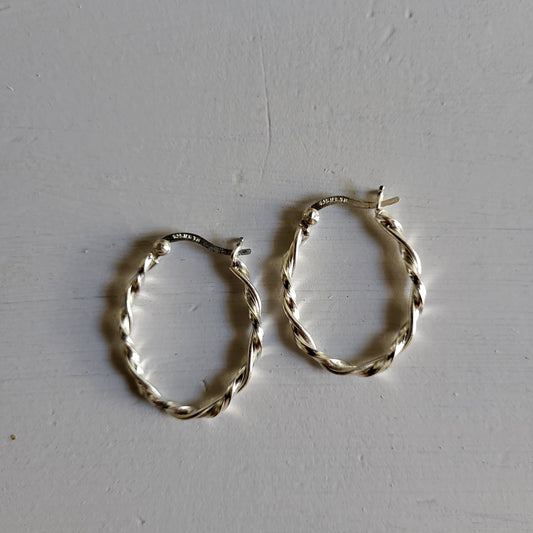 925 Sterling Silver Oval Twist Hoop Earrings