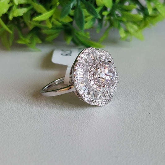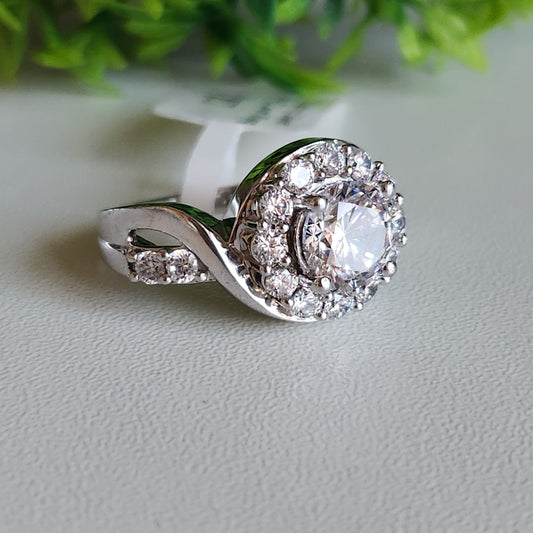 925 Sterling Silver RBC Halo Swirl CZ Ring
