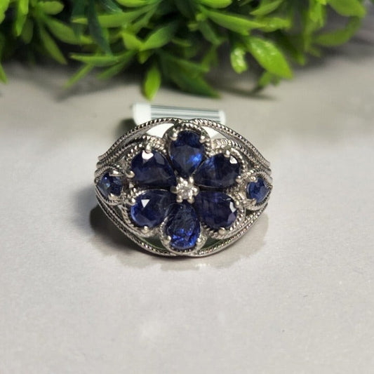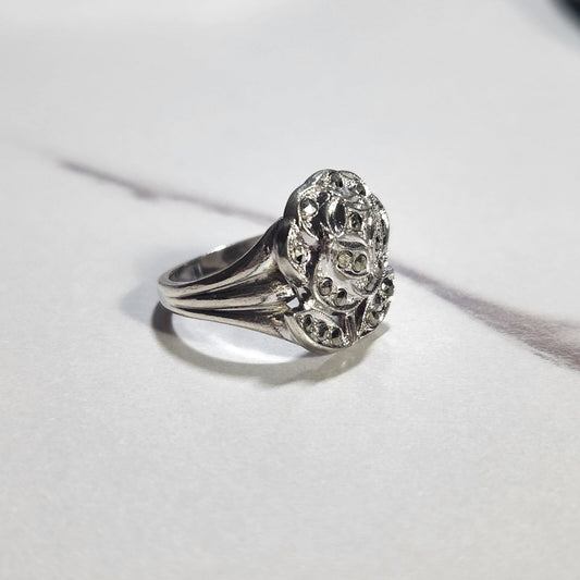 925 Sterling Silver Vintage Art Deco Blue Flower Ring