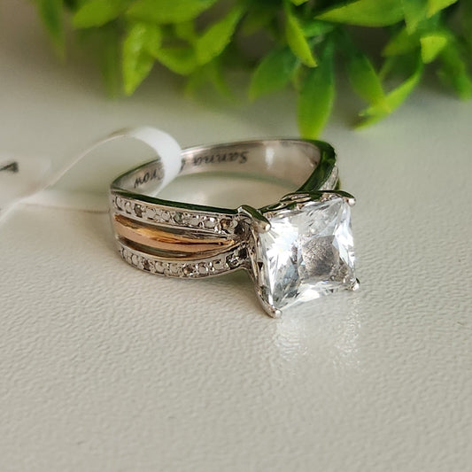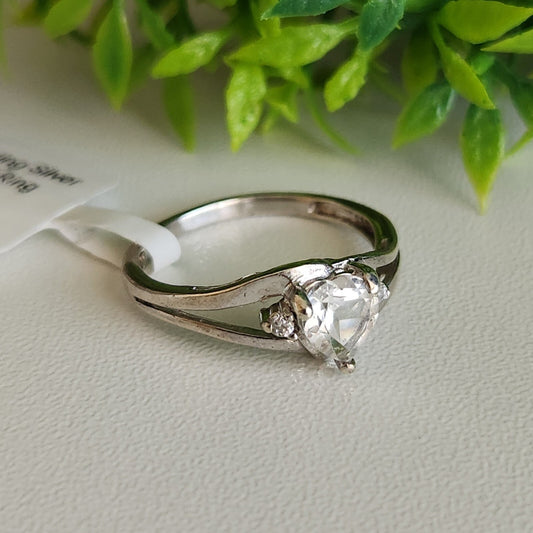925 Sterling Silver Princess CZ Heart Engagement Ring