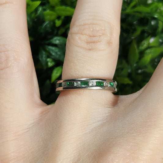 925 Sterling Silver Green and White CZ Full Eternity Ring