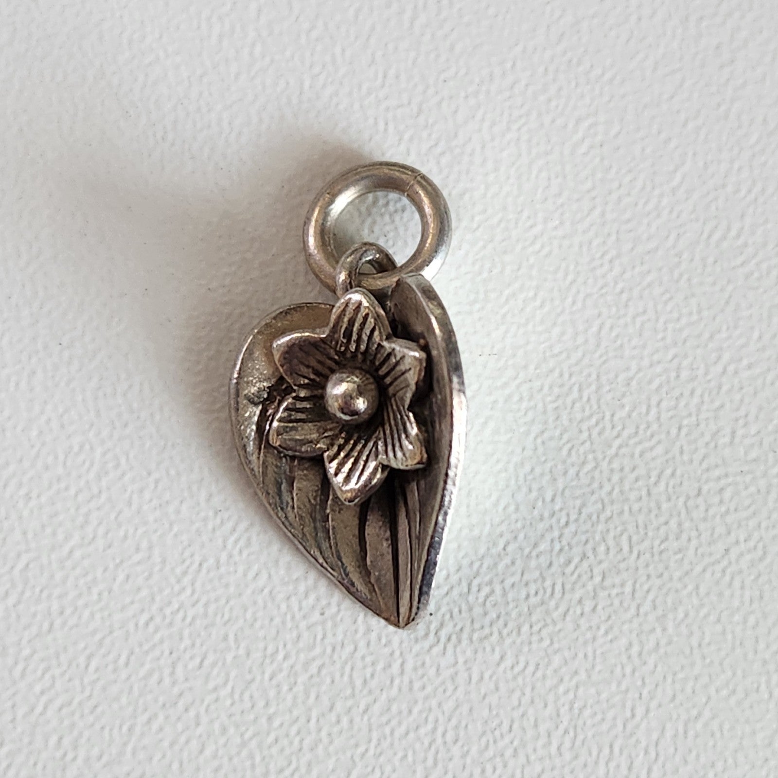 Style: 925 Sterling Silver Flower Petal Charm - Hibiscus Daisy Rose Flowers Heart Leaf Leaves Petals Cute Charm Pendant Vintage Antique
