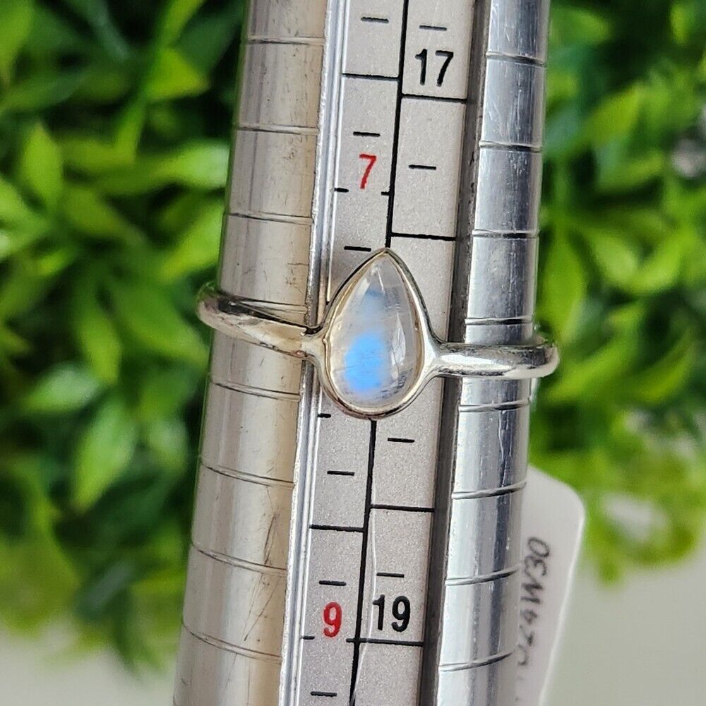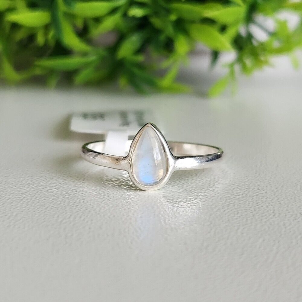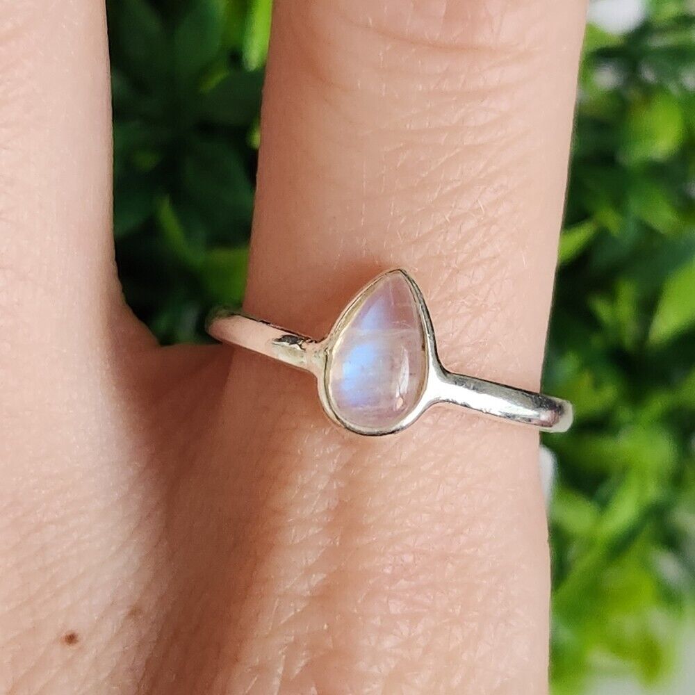 Style: 925 Sterling Silver Moonstone Ring - White Gemstone Opal like Crystal Multicolor Rainbow Pear shape Vintage Antique