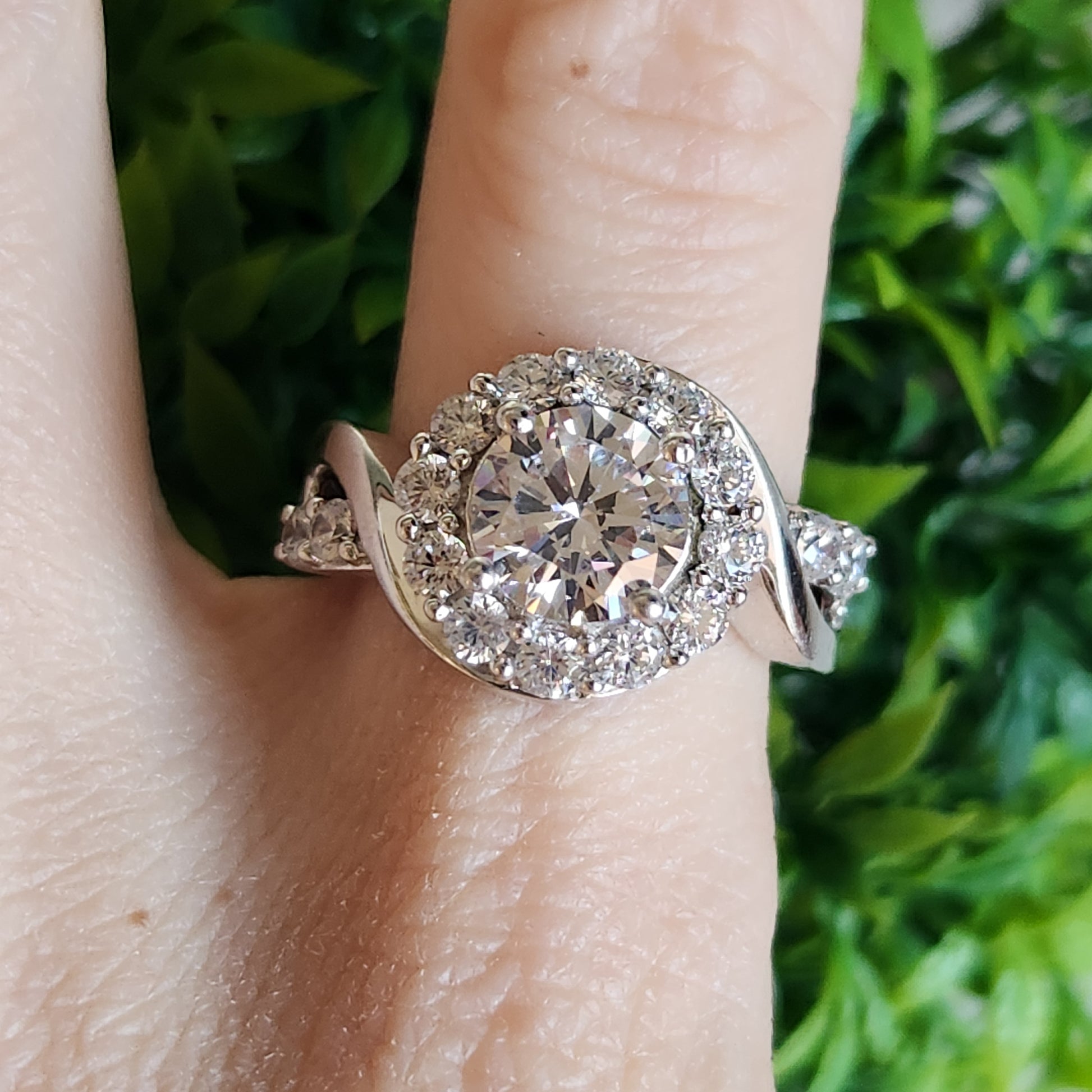 Style: 925 Sterling Silver RBC Halo Swirl CZ Ring – Vintage Antique Designer Jewelry – Engagement, Wedding, Promise, Statement, Cocktail & Everyday Wear – Boho Minimalist Timeless Design – Preloved Ethical Sustainable Silver Jewelry