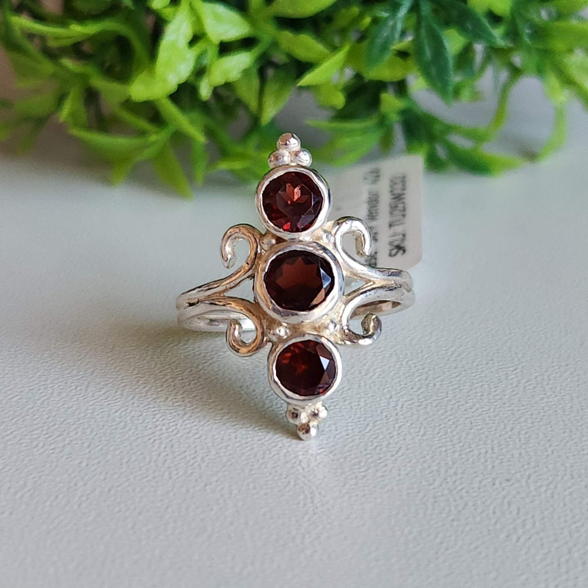 Style: 925 Sterling Silver Three Stone Garnet Ring – Vintage Antique Designer Jewelry – Engagement, Wedding, Promise, Statement, Cocktail & Everyday Wear – Boho Minimalist Timeless Design – Preloved Ethical Sustainable Silver Jewelry
